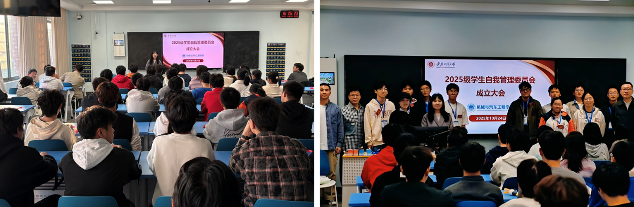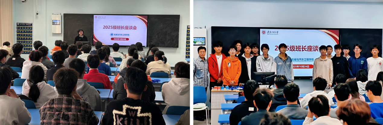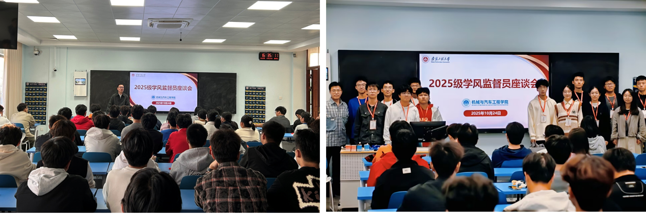 本网讯 为进一步激发学生主人翁意识,提升学生自我教育、自我管理、自我服务能力,1024日,机械与汽车工程学院分别组织开展了2025级学生社区自我管理委员会成立仪式、学风监督员聘任仪式以及班长座谈会。学院党委副书记秦广虎,院团委书记、2025级全体辅导员及各学生组织、班级学生代表参加了相关活动。