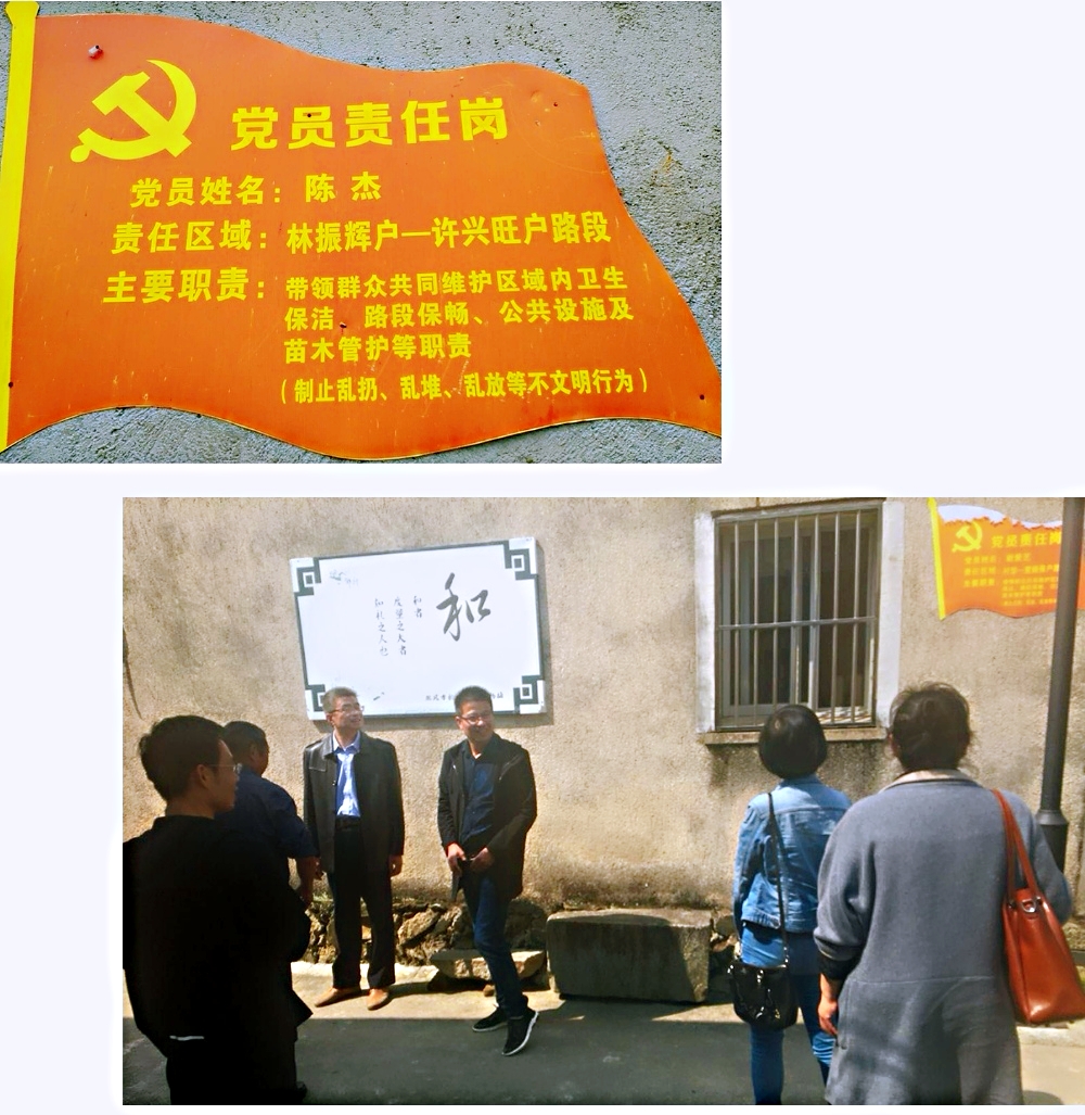 纺轻教工党支部的老师们来到杨梅村村口,映入眼前的是清澈的杨梅河穿村而过,青砖灰瓦白墙的古民居和现代化的居民房连成一片,古门楼、法制小道、如花径般的村中小巷、干净整洁的卫生环境、村民们一声声问候一张张笑脸,似一幅徽韵浓郁、安静祥和的古村落画卷。杨梅村党支部书记朱培发告诉大家,三年前的杨梅村可不是这样,那时村里没有集体经济,村整体环境较差,老百姓的精神气也不足。开展扶贫工作以来,村党支部一心一意发展集体经济,扶持党员创业,带动村民集体脱贫,同时结合美好乡村建设,大力改善村庄环境。在2016年“两学一做”学习教育中,村支部选出13名无职务党员对村庄环境卫生进行常态化维护,根据各自居家位置进行责任区域划分并授牌,设立党员责任岗标牌,事实证明,设立党员责任岗以来,村里的环境卫生一天比一天好起来,在党员以身作则的带领下,村民自觉维护集体环境的意识日益增强,村庄环境发生了翻天覆地的变化,一座美丽的乡村日渐形成,2017年杨梅村入选全国美丽宜居村庄示范村。