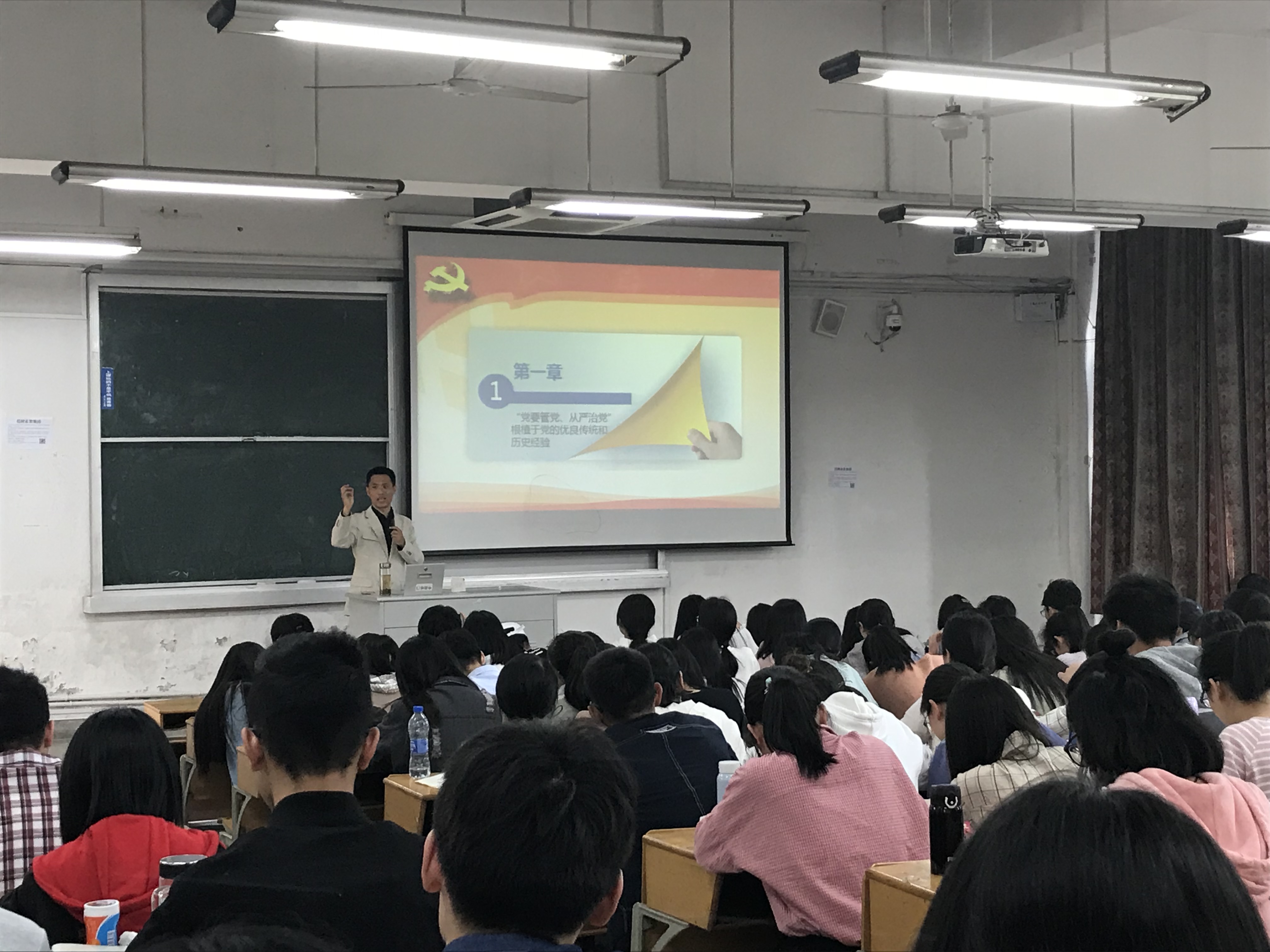 刘德军老师首先从1949年西柏坡进京赶考、毛泽东同志回答黄炎培的“历史周期律”等一个个具体鲜活的历史实例引入,向同学们阐释了“党要管党、从严治党”是根植于党的优良传统和历史经验。通过对苏联解体的历史教训的分析,刘老师结合近几年来我国全面从严治党的新成就、新特点向同学们强调从严治党,首先要从党内政治生活严起,全面从严治党只有进行时没有完成时。