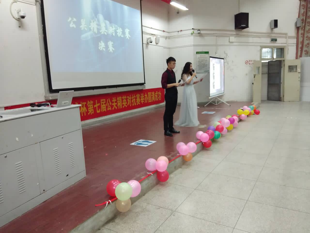 为演绎公关梦想,传递精英魅力,给同学们提供展示自我、互相交流的平台,校公关协会于5月20日下午2:30在二教报告厅举办了第七届公关精英对抗赛决赛。比赛由来自管理工程学院的汪磊、赵静云、赵恒梅三位老师担任评委。