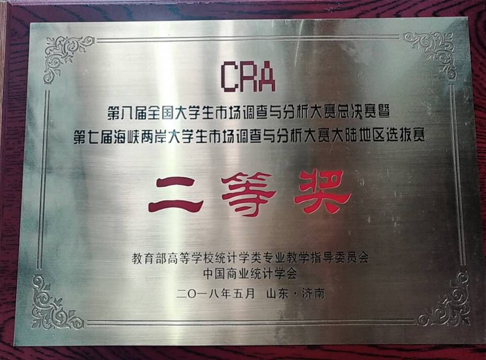 本次大赛旨在引导大学生创新和实践,提高学生的组织、策划、调查实施和数据处理与分析等专业实战能力,培养学生的社会责任感、服务意识、市场敏锐度和团队协作精神。我校鼓励学生积极参加,在谢荣见教授和姚静静博士的精心指导下,无人可及队经过理论知识赛、校级和省级实践赛的层层选拔,在激烈的竞争中脱颖而出获得参加国赛的资格,在国赛不负众望,荣获全国二等奖。