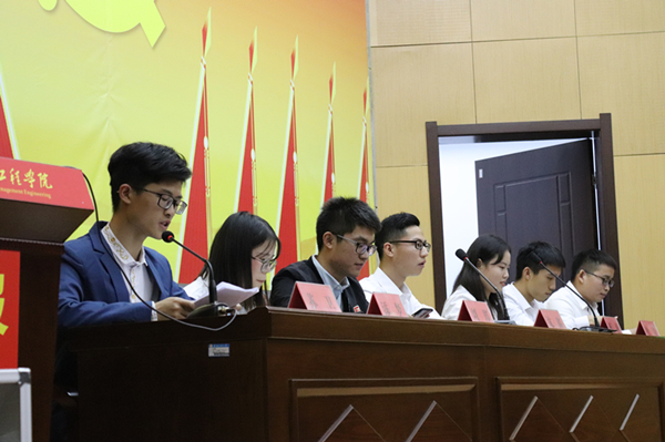 第一届学生委员会主席团代表沈鑫作了报告,他以《传承使命 勇于创新 敢于实践--谱写我院学生会工作新篇章》为题总结了学生会工作,并详细地提出未来两年工作的构想,号召全院同学以实际行动,以用于创新的精神为自身及学院发展作出积极贡献。