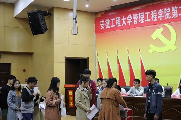 大会在庄严的国歌声中拉开帷幕。校学生会副主席周东岑同学作了发言,他介绍了校学生会近两年在服务全校学生中所取得的发展和成就,强调学生干部应有的工作作风和责任意识,对管理工程学院学生会工作提出建议和要求。