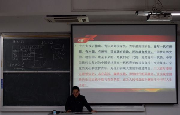 李老师以“学习新思想,争做有理想、有本领、有担当的新时代青年”为主题,讲述了五个板块,1、“青年兴则国家兴,青年强则国家强”;2、“志当存高远”; 3、“梦想从学习开始,事业靠本领成就”;4、“有多大担当才能干多大事业”;5、“在感悟时代、紧跟时代中珍惜韶华”。讲座中,李老师引经据典,结合习近平总书记的讲话,强调了青年群体的重要性,指出青年一代应有理想有担当,并把自己的理想与国家理想有机结合。结合自身的求学经历,告诫同学们需明确自己大学四年的目标,梦想不会轻易实现,我们必须付出艰辛努力,练就过硬本领。最后,李老师以“有多大担当才能干多大事业”引出了“担当就是责任”的观点,鼓励我们首先要对自己负责,更要肩负起对国家、民族的责任,始终胸怀大局、心有大我。