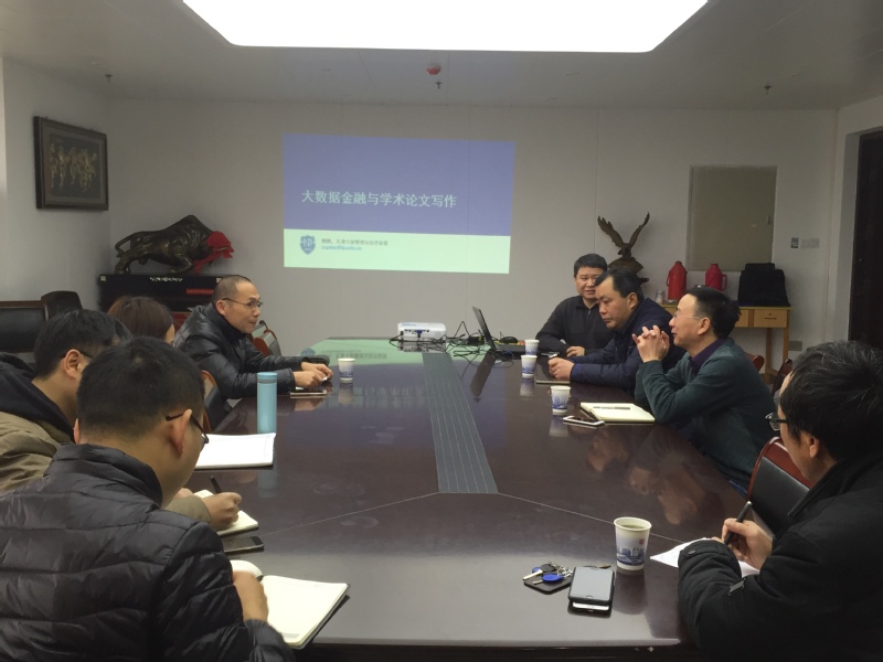 1月12日上午,天津大学熊熊教授应管理学院邀请,在C座818会议室做了题为“金融大数据分析与管理类学术论文写作”的学术报告。会议由王忠群院长主持,科技处副处长何朝林教授、管理学院副院长龚本刚教授、学院部分教师以及研究生参加了此次报告会。