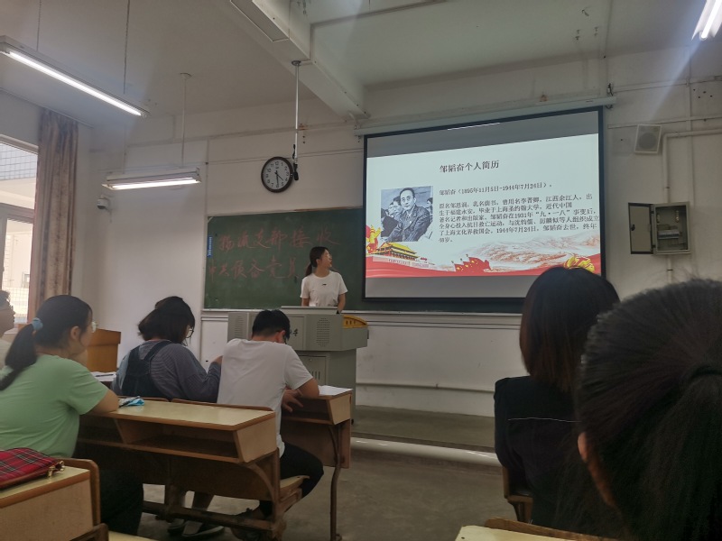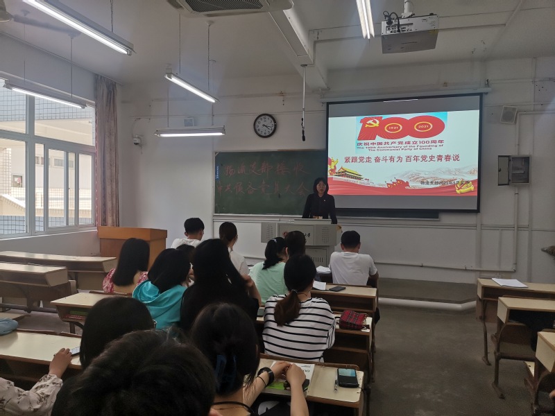党史不只是一本本书,一盒盒红色档案,更是一个个鲜活的生命,一篇篇催人奋进的故事。党员活动从支部书记赵妍老师介绍建党100周年活动标识含义开始,建党100周年活动标识由党徽、数字“100”“1921”“2021”和光芒线组成,生动展现中国共产党团结带领中国人民不忘初心、牢记使命、艰苦奋斗的百年光辉历程。之后,支部学生党员杨世虎以《邓小平与香港回归》分享党和国家对一国两制的坚定态度;彭洋洋以《习近平青年时期在梁家河的奋斗故事》带领大家感悟青春奋斗的力量,号召党员们要向总书记学习,练就过硬本领,投身强国事业;向德志以《周恩来总理言传身教拒收礼品》号召党员们要以身作则,廉洁自律;李玉玲以《邹韬奋临终遗言请求入党》分享革命志士坚定崇高信仰,谢英明以《一支睡在马路上的部队》分享党的严明纪律,号召党员要在毕业班工作中发挥模范作用;孔垂琳以《长征精神》围绕就业选择,号召党员要走进基层,不怕吃苦,顽强拼搏,以知识能力迎接未来。以上六个故事的分享,传递党史精神力量,支部同志认真聆听,深受鼓舞,受益颇深。