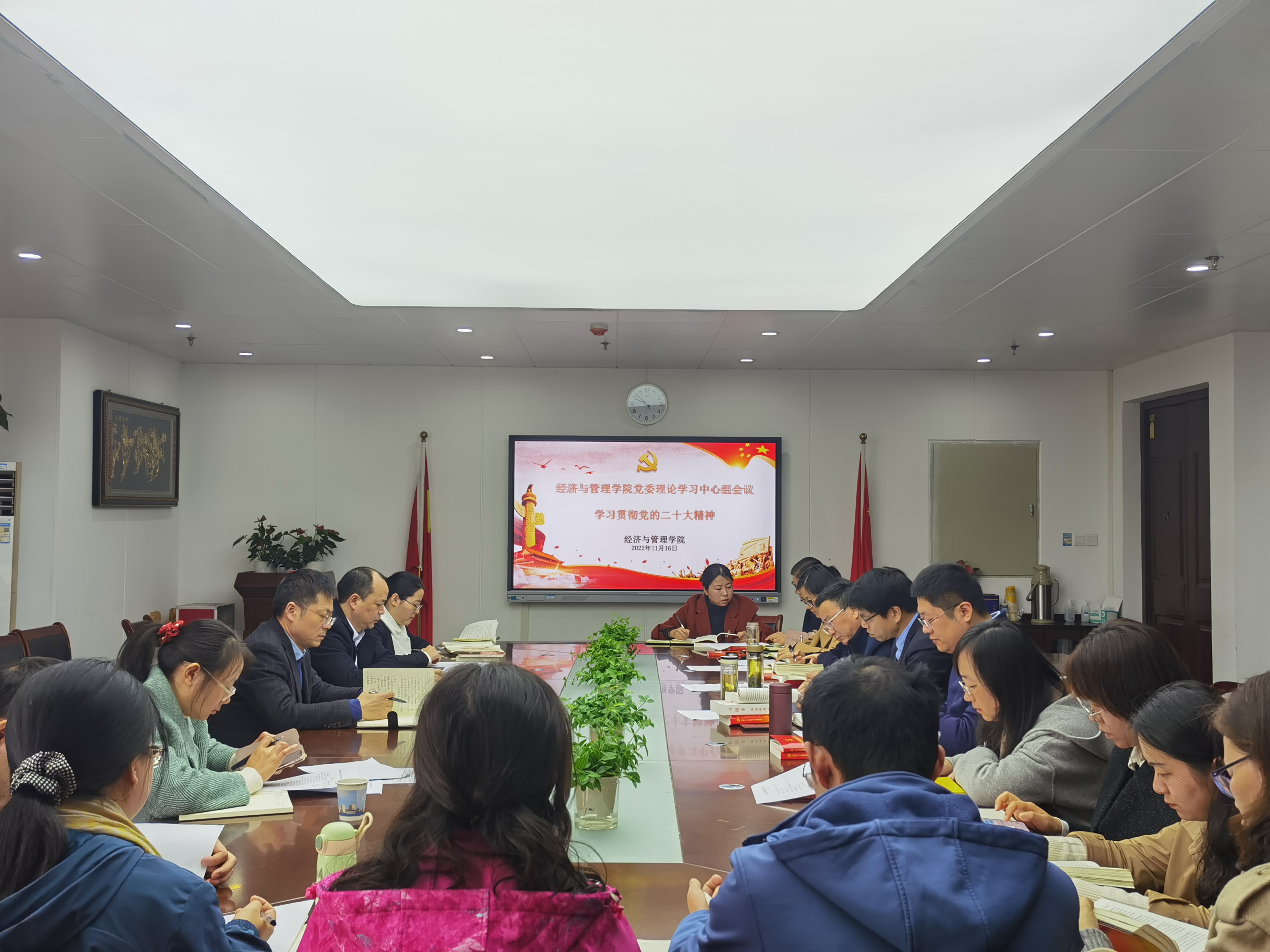 11月16日,经济与管理学院党委理论学习中心组在学院会议室专题学习党的二十大会议精神,校党委常委、教务处处长周晓宏出席,二级党组织理论学习旁听工作组第三组成员马克思主义学院党总支书记刘伟等列席会议,学院党委理论学习中心组全体成员参加会议,会议由学院党委书记水心宝主持。