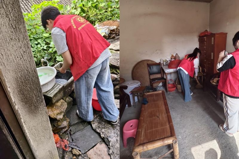 为了改善困难户的生活环境,实践队员们还投身到庭院美化工作中。他们分工明确,有的挥汗如雨地拔除杂草,有的细心整理杂物,还有的则动手修复破损的篱笆。经过一番努力,原本杂草丛生、杂乱无章的庭院焕然一新,变得整洁有序、生机勃勃。在清理过程中,队员们还意外发现了一些老旧的农具,这些农具不仅承载着桂爷爷等老一辈人的辛勤记忆,也成为了连接过去与现在的桥梁,让年轻志愿者们深刻感受到了乡村的历史变迁和老一辈人的不易。