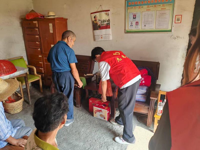 在桂爷爷家中,实践队员们用实际行动诠释了“精准帮扶”的内涵。他们不仅带来了生活必需品,更重要的是,通过亲切的交谈和贴心的陪伴,让老人感受到了久违的温暖与关怀。队员们耐心倾听桂爷爷讲述往昔岁月,从艰苦的生活经历到如今的点滴变化,每一次回忆的分享都加深了彼此之间的情感纽带。在欢声笑语中,桂爷爷的家变得生机勃勃,老人的脸上洋溢着幸福的笑容。