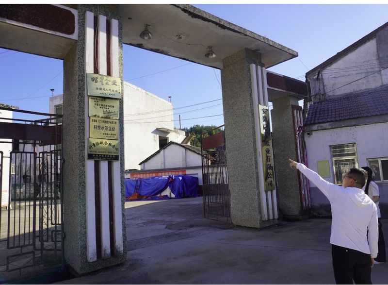 调研过程中,团队也注意到“博士村”在教育品牌背后所蕴含的多元发展潜力。村庄依山而建,生态环境优美,拥有深厚的文化与产业资源。近年来,已有多批学生团队前来研学访问,村干部亦在积极谋划“教育+文旅”的融合发展路径。团队重点参观了当地非遗特色产业——安徽潜山县汉皮纸厂。这项传统工艺已有上百年历史,仍保留原始手工制作技法,具有较高的历史价值与文创转化潜力。逆水村第一书记陈更胜介绍,目前产品主要用于引线纱纸、文化用纸,未来希望与高校在产品设计、品牌推广方面深化合作。团队成员现场参观了造纸机器和厂房,并就“汉皮纸+博士文化”文创衍生方向提出初步设想。