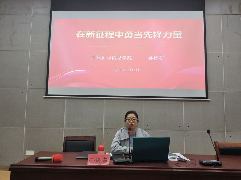 为深入学习宣传贯彻党的二十大精神,落实学校“三全六专”工作要求,进一步增强发展对象和入党积极分子思想觉悟和理论素养,端正入党动机,引导学生积极向党组织靠拢,4月14日,计算机与信息学院分党校举行第三十五期入党积极分子培训班暨第十二期发展对象培训班开班典礼。院党委副书记孙德茹、第十二期发展对象培训班班主任陈涛、第三十五期入党积极分子培训班班主任王鸣鹃及全体学员参加。开班典礼由陈涛主持。