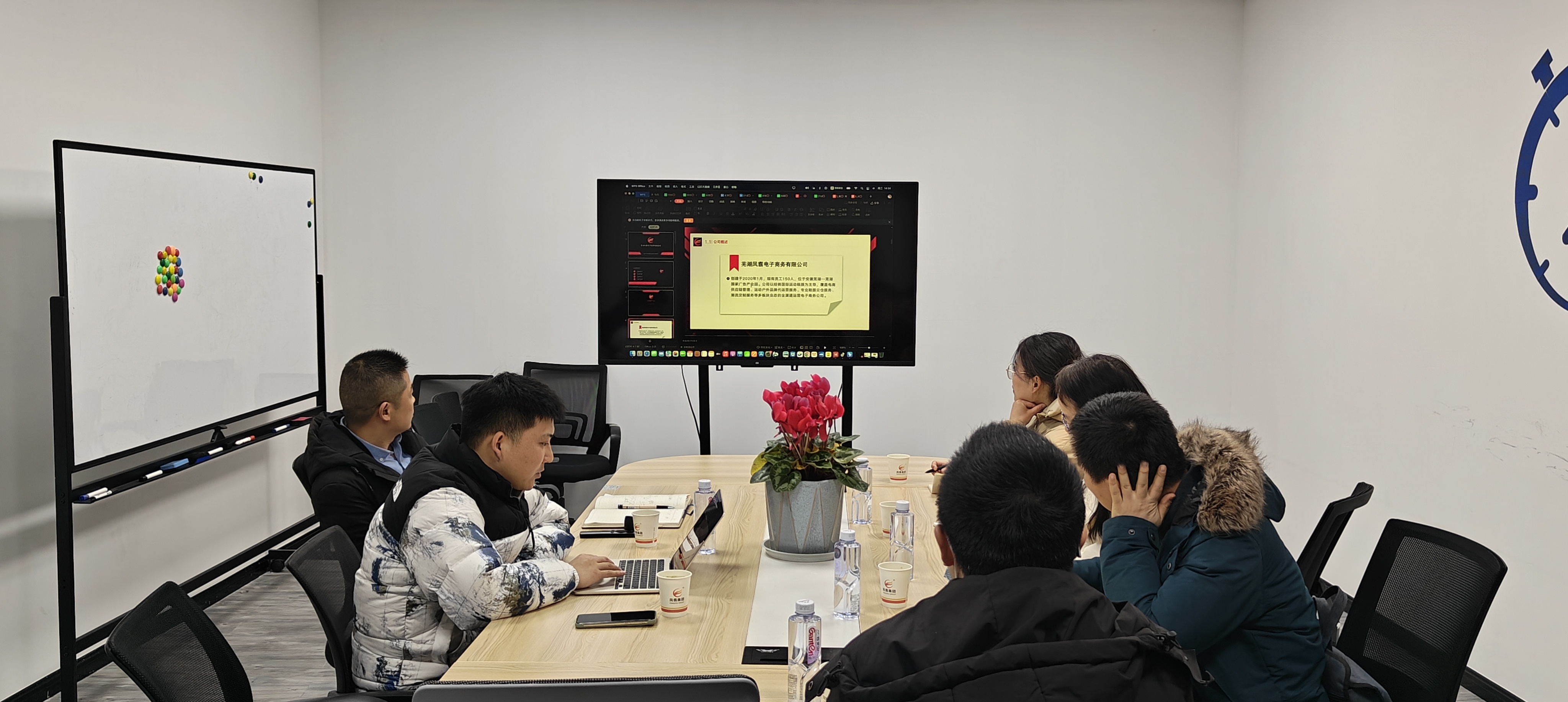 随后,刘涛一行来到芜湖智唐科技有限公司。该公司总经理夏雨昊带领大家参观了公司的成果展示中心。他介绍了公司在软件开发、技术服务等方面的业务进展,并着重讲解了公司在互联网信息服务领域的创新成果。刘涛表示,学院已在智慧医疗、大模型应用、信息安全等方面与智唐科技开展了深入合作,取得了初步成果,希望双方能够继续深化合作,学院愿意为智唐科技提供更多的技术支持和人才支撑,推动共同发展。