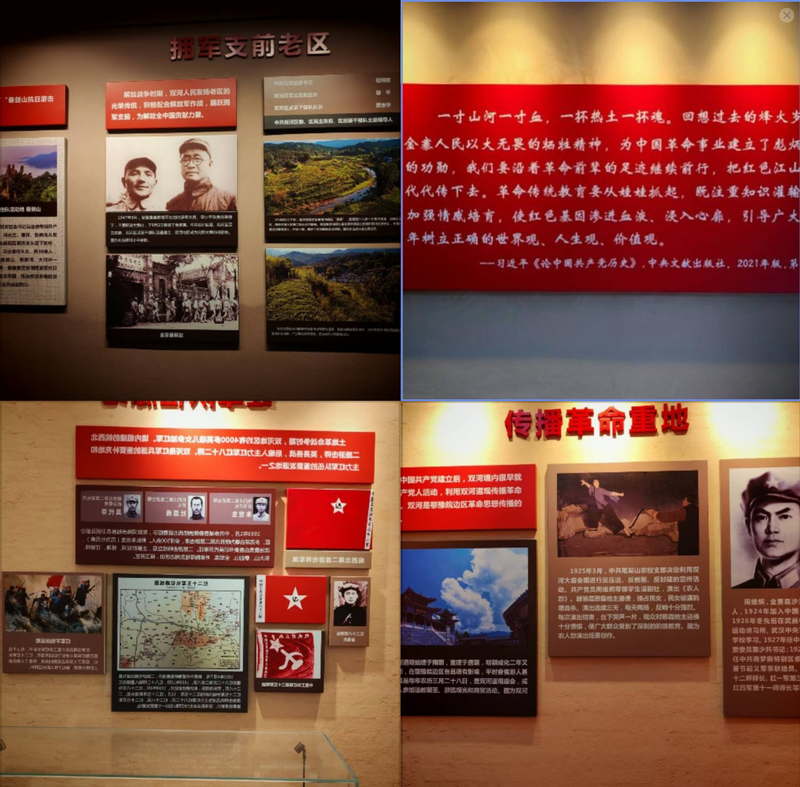 实践团首站踏入双河暴动旧址,党史专家的讲解如时光拨片,将1929年的风云重现。展柜里,锈迹斑斑的枪械诉说着战斗的艰苦;作战地图上,蜿蜒的红线藏着突围的智慧;烈士遗物旁,岁月沉淀的温度让“牺牲”二字不再抽象。当听闻农民武装以简陋武器对抗反动势力,同学们的脚步慢了,目光凝了,张同学在日记中写下:“泛黄名单上的名字,是山河热血的注脚,让我懂了‘热血换山河’的重量。”旧址的砖石瓦砾间,青春与历史对话,先辈的勇气在年轻心灵里播下火种。