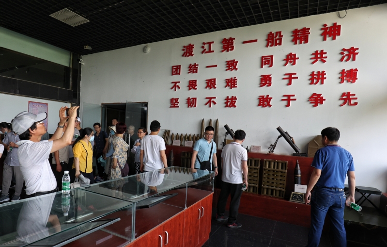 下午,学员们来到渡江战役第一船登陆点——繁昌区板子矶,通过聆听讲解、参观实物展览、观看记录片等方式,追忆革命峥嵘岁月,感悟“团结一致,同舟共济;不畏艰难,勇于拼搏;坚韧不拔,敢于争先”的“渡江第一船精神”。通过参观学习,全体学员近距离感受烽火连天的革命岁月,大家表示要赓续红色血脉,鼓足奋进力量,以更好的精气神迎接中国共产党成立100周年。