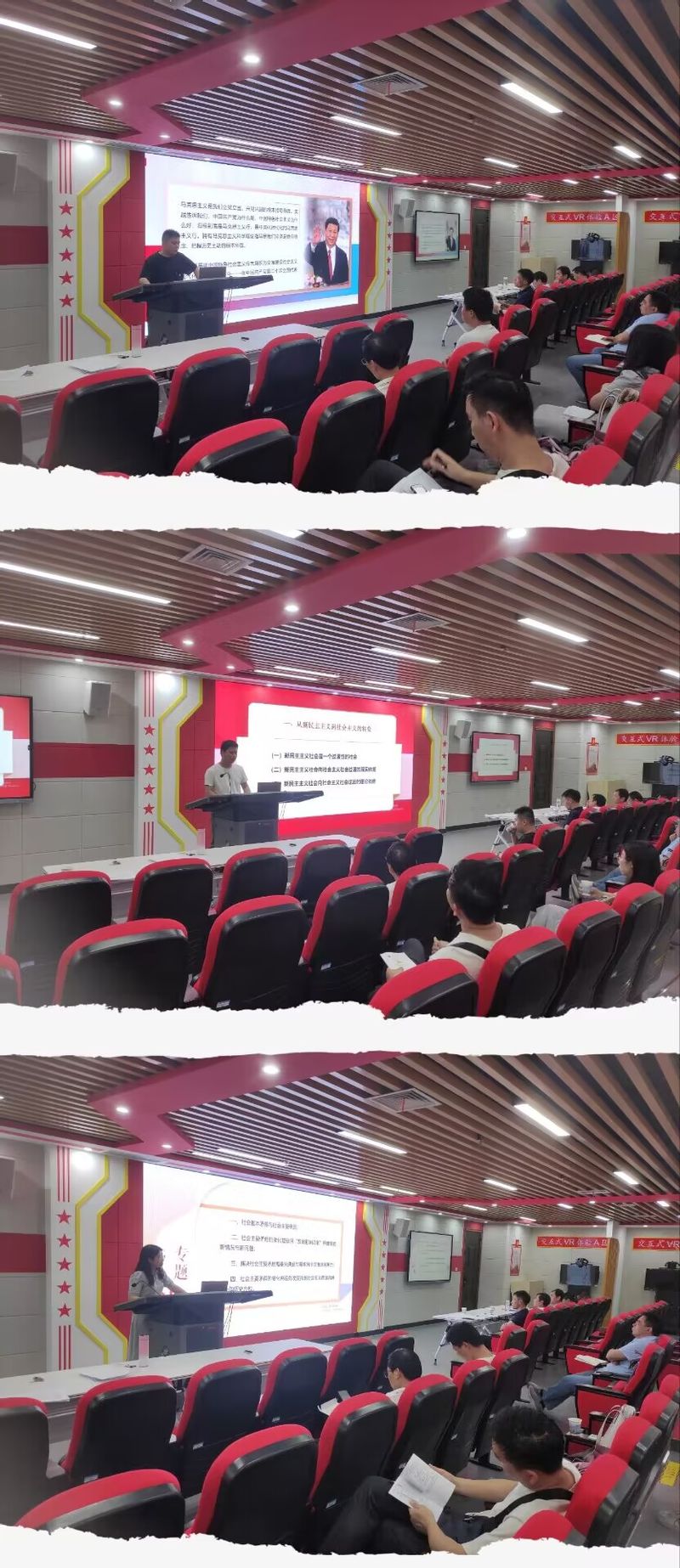 刘德军介绍了新入职教师助课助教考核工作要求,并对考核内容和流程进行了说明。四位新入职青年教师分别进行了助课助教情况汇报和助教课程试讲展示。试讲中,青年教师态度谦虚诚恳、仪表大方得体,教学内容丰富、重难点突出,教学设计合理,教学手段多样,展现出作为一名高校思政课教师的基本素养和风采。随后,指导教师对指导情况及新教师成长发展状况进行了汇报,并就今天的试讲作出点评,指明优点与不足,还对新教师今后的发展提出了殷切期盼。最后,考核组集体审阅青年教师助课助教材料,结合试讲表现,对助课助教和指导教师的指导任务完成情况进行综合评价,形成了考核意见。