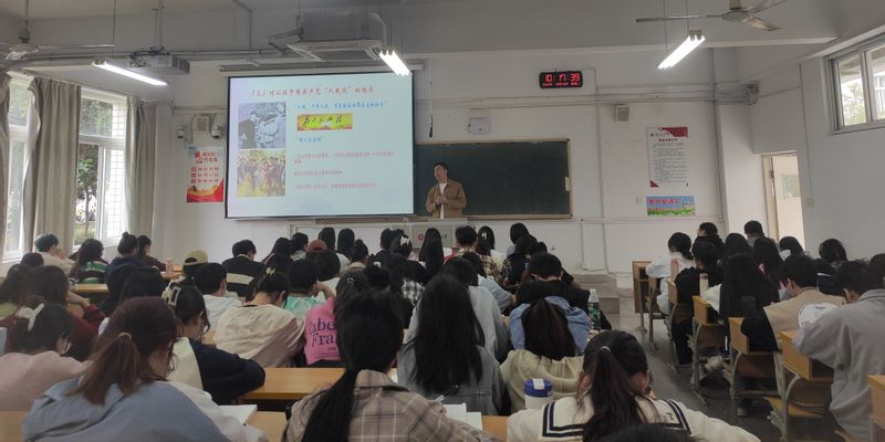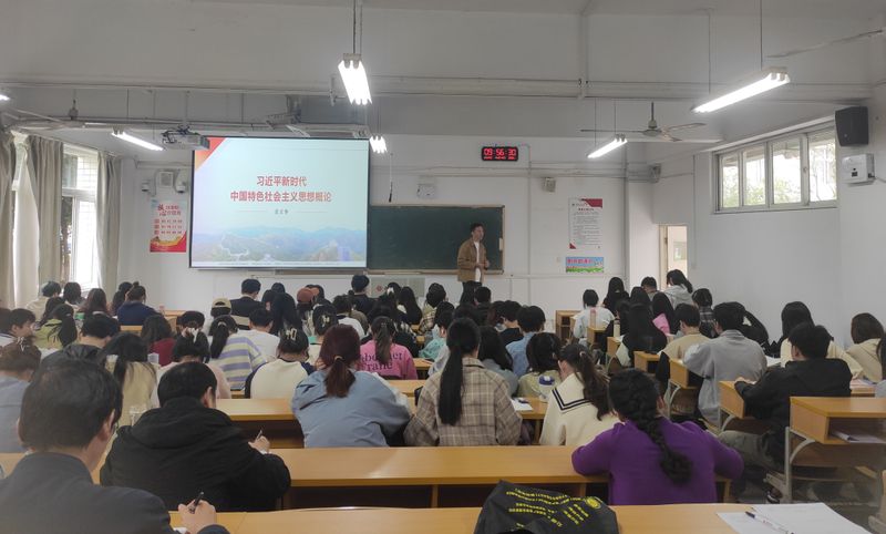 本次示范教学主讲教师是余文华博士,讲授内容为《习近平新时代中国特色社会主义思想概论》的第四章“坚持以人民为中心”。余老师为本次活动做了充足的准备,他通过提问的方式帮助学生巩固上节课知识点,加强与学生之间的交流;接着他展示2019年习近平总书记会见意大利众议长菲科时的对话来开始今天的主题讲解,他围绕“以人民为中心的生成逻辑”重点讲述马克思主义群众观、中国传统文化“民本思想”、中国共产党“人民观”和习近平总书记的自我实践经历等;最后他以一个简短的视频讲述习近平总书记心系人民的心路历程。整个课堂内容详实,逻辑清晰,案例丰富,兼具学术性和生动性。