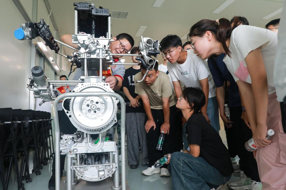 新生们首先走进奇瑞智造一工厂,先后参观焊装车间与总装车间,近距离感受汽车制造流程的智能化与高效化。随后,师生一行前往芜湖埃科泰克动力总成有限公司,参观劳模工匠技能大师联合工作室暨动力总成装调实训基地,参与发动机实训体验课,动手实践,进一步激发了新生们对专业技术的探索兴趣。