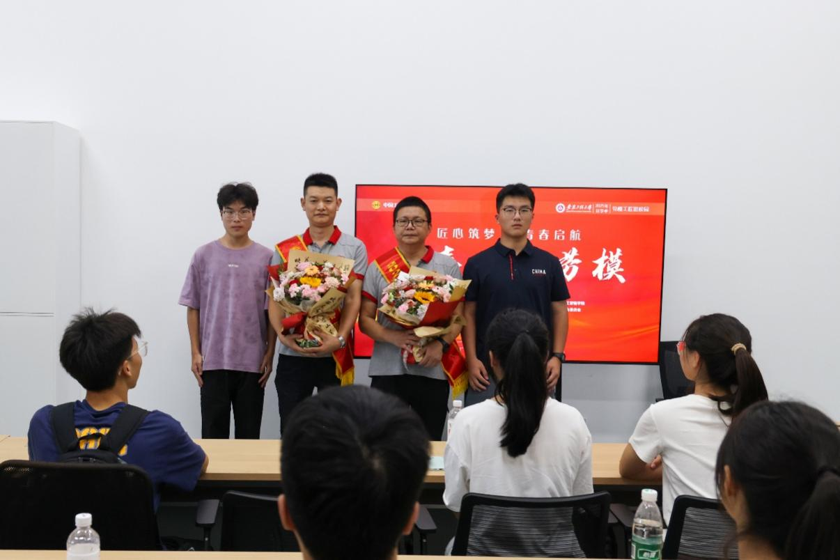 在“匠心筑梦 青春启航”主题交流座谈环节,新生代表向奇瑞公司劳模工匠杨超、汪湖献花致敬。两位劳模分享了自己的成长经历与职业感悟,他们从初入行业的青涩摸索,到深耕技术领域的执着坚守,再到攻克技术难题的奋斗故事,深深打动了在场每一位新生。新生们踊跃发言,积极提问。杨超与汪湖结合自身经历,耐心解答同学们的疑惑,鼓励大家既要扎实学好课本知识,也要深入实践,在实干中锻炼真本领、真能力。奇瑞公司青年员工代表也与同学们分享了自己的大学学习经历,鼓励同学们明确职业理想,做好学习规划,勇于探索实践。