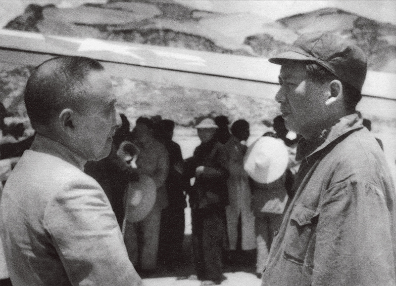 习近平总书记多次提及1945年毛泽东和黄炎培在延安窑洞关于历史周期率的对话,指出这番对话至今对中国共产党都是很好的鞭策和警示,强调要着力解决好“其兴也勃焉,其亡也忽焉”的历史性课题,增强党自我净化、自我完善、自我革新、自我提高能力。图为毛泽东与黄炎培在延安机场交谈。