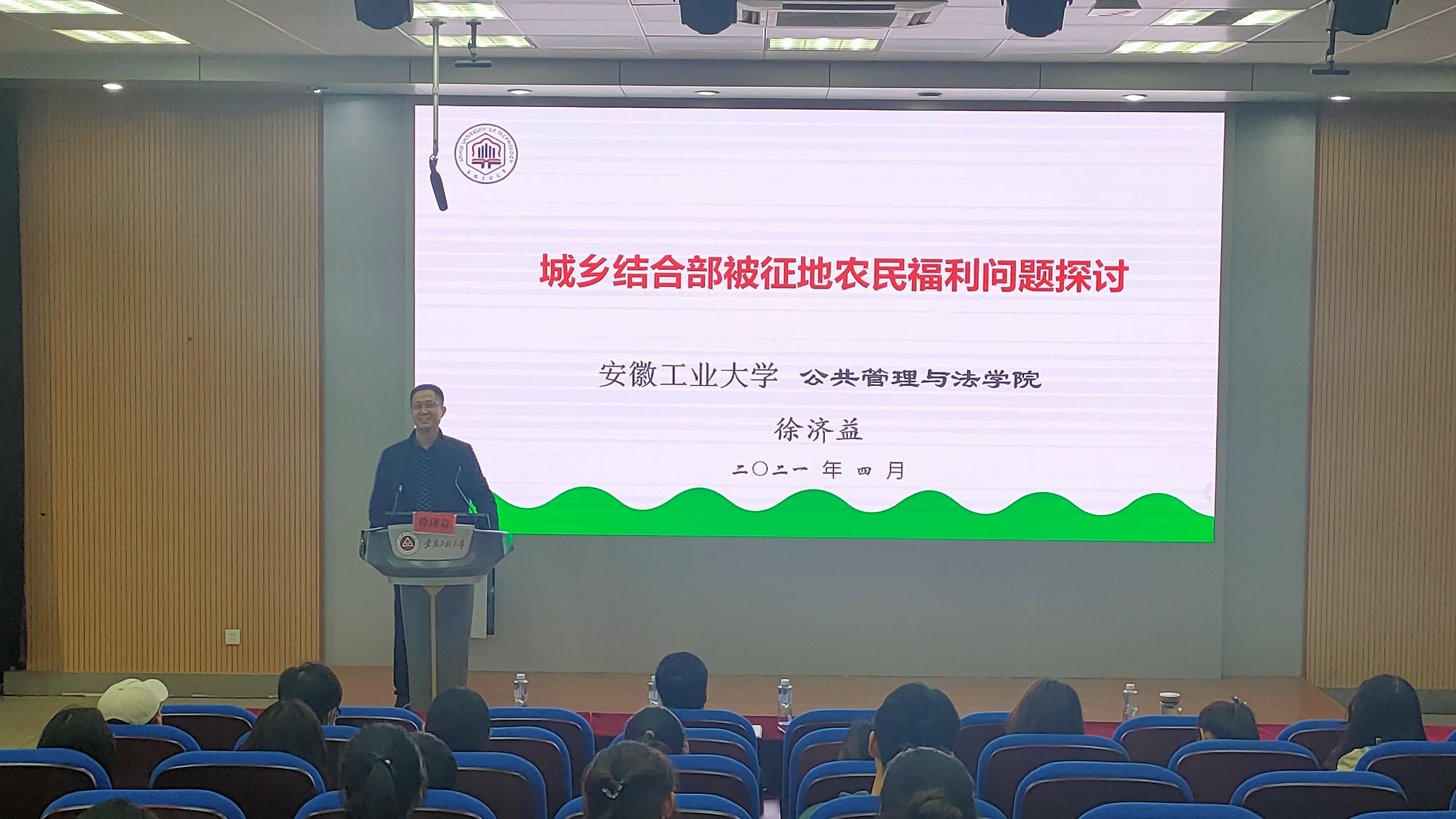 4月16日下午,安徽工业大学公共管理与法学院院长徐济益教授应邀来我校作题为“城乡结合部被征地农民福利问题探讨”的学术报告。学院部分教师和行政管理专业部分学生参加了报告会,报告会由人文学院副院长周伟教授主持。