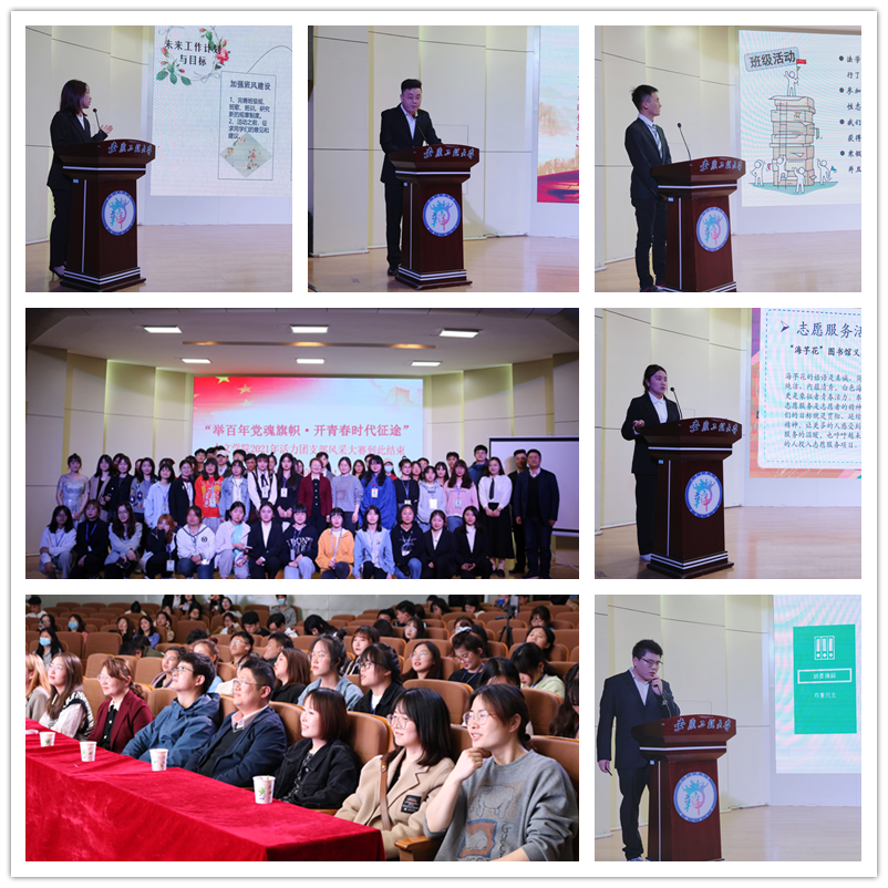 4月18日晚7:00,人文学院团委主办的“举百年党魂旗帜·开青春时代征途”活力团支部风采大赛决赛在学术报告厅举行。人文学院党委副书记金艾裙、、组织员、团委书记、全体辅导员及学院300多名学生观看了此次比赛。