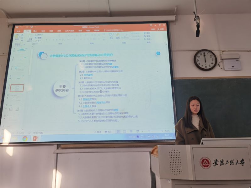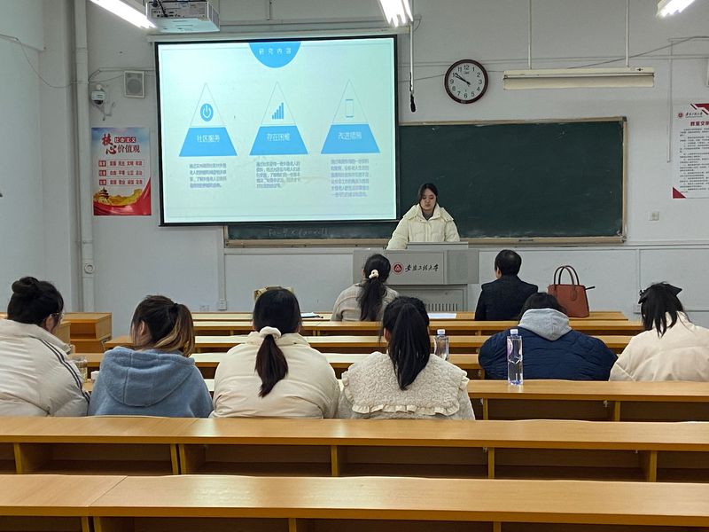 汇报会上,学生以PPT的形式从课题的研究意义、研究思路、主要研究内容和研究方法、参考文献等方面进行了汇报;答辩教师根据学生的陈述和开题报告进行提问,并对汇报中存在的问题提出修改意见及建议。从汇报的情况来看,绝大部分同学准备充分,研究方案设计合理,也有极少数学生准备不充足、研究思路与逻辑结构模糊,有待进一步完善。