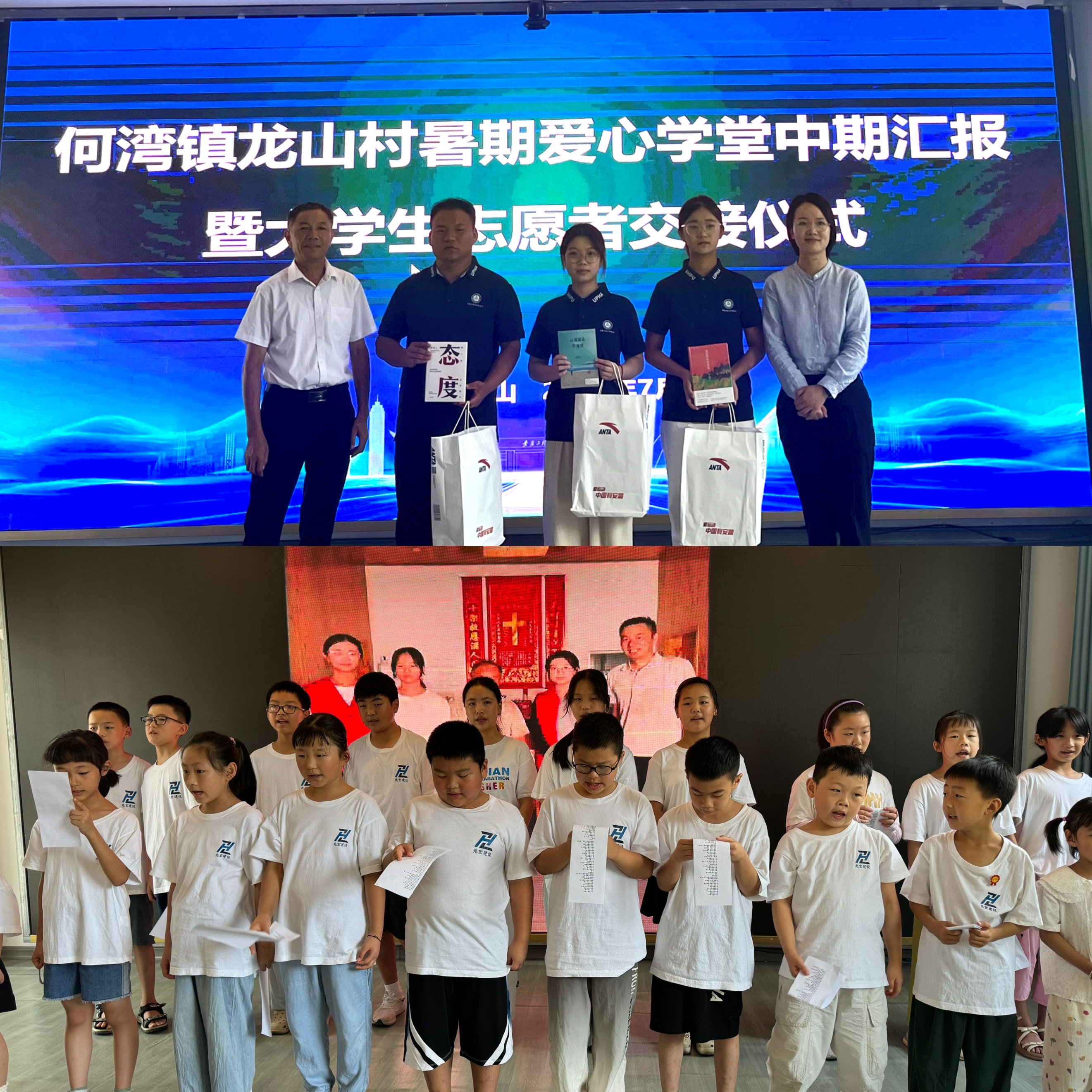 在“暑期爱心学堂”中期汇报暨大学生志愿者交接仪式上,调研团第一批成员分享了与孩子们相处一个月的支教故事和自己的收获。一位学生家长紧紧握住调研团成员的手说道:“老师,你们真好,孩子都不舍得你们离开。”现场充满了依依不舍之情。7月25日至8月8日,调研团第二批成员将接续支教,助力龙山村的留守儿童度过一个安全、快乐、有意义的暑期。