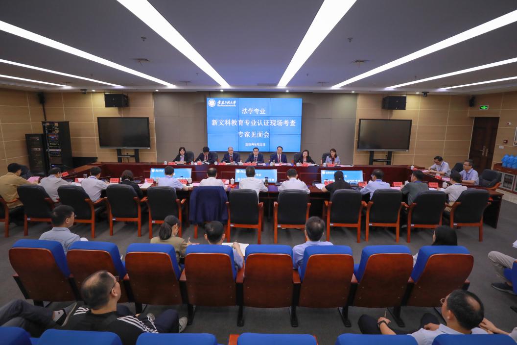 黄友锐介绍了学校的发展历程、办学特色以及法学专业建设的相关情况。他表示,学校高度重视专业认证工作,牢固树立“学生中心、产出导向、持续改进”的认证理念,把专业认证作为实现一流本科教育的重要举措,持续改进教学活动,实现“教得好向学得好、评教向评学、要我学向我要学”的转变。此次认证考查,既是对我校法学专业建设工作的一次全面检验,更是一次极为珍贵的学习和提升机会,期待通过专家组考查,为专业建设精准把脉,指导专业找准方向、补齐短板,不断提高专业建设水平和人才培养质量,推动学校新文科建设迈向更高水平。