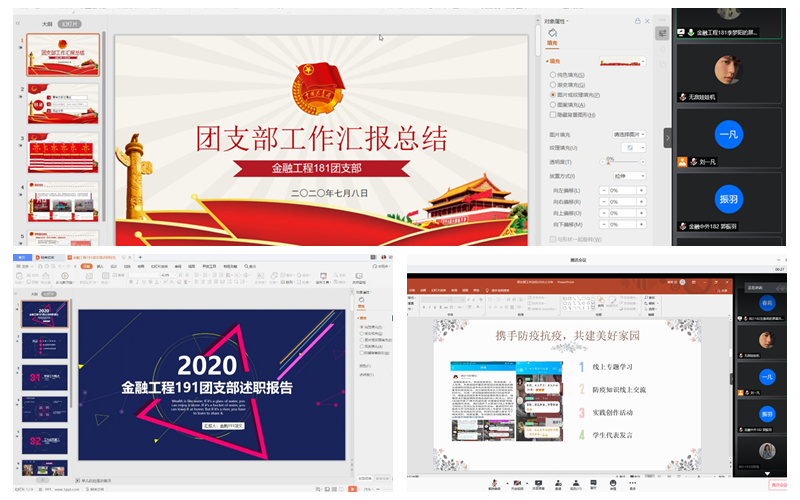 各支部书记依次报告了2020年上半年的工作进展,从青年大学习、主题团日、“我的返家乡实践”等支部工作进行总结,整理活动举办的过程中所存在的问题和不足之处,提出相应的整改方案。会议过程中各班级团支书之间互相学习、交流经验,并对2020年下半年的工作进行规划,确保活动开展时全体学生的参与度以及热情积极性,提高班级凝聚力,增强集体之间的默契度。