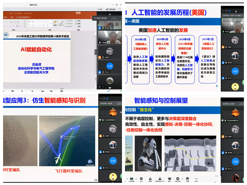 应数理学院邀请,北京航空航天大学自动化科学与电气工程学院院长、人工智能研究院副院长、软件开发环境国家重点实验室副主任、博士生导师吕金虎教授,以腾讯会议方式为数学、控制、计算机与人工智能等相关学科师生做了题为《AI赋能自动化》的学术报告。报告会由副校长费为银教授主持,共180余人聆听了本次报告。
