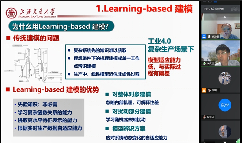 李少远教授做了题为《基于“智能”增强的预测控制》的学术报告,他在报告中首先对预测控制的发展及其应用和“系统赋能”的技术方法进行了介绍,随后重点分析了Learning-based  MPC模型。