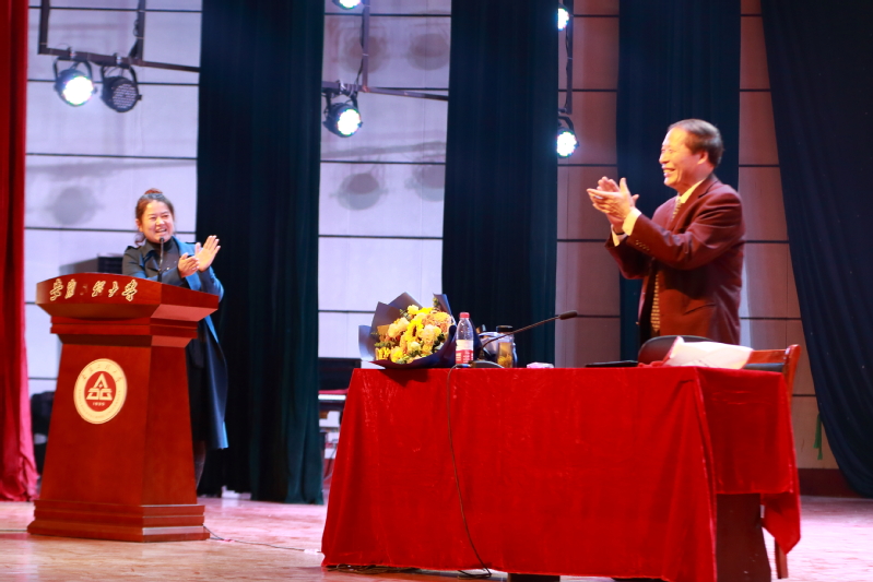 王燕向苏老战士及为祖国建设做贡献的先辈表达了感恩之意,并告诉全体师生无论祖国多么富强都要坚持奋斗、不忘初心。她强调,作为老师,应在教书育人的道路上砥砺前行,努力做“大先生”,促进学生成为全面发展的人;作为学生,应在追求人生价值的道路上义无反顾,做真正的“大学生”,要立报国之志、成才之志与向学之志,珍惜时间,砥砺前行。最后,她希望每位老师与同学在未来可以携手前进,在中华民族伟大复兴道路上一起披荆斩棘、勇往直前。