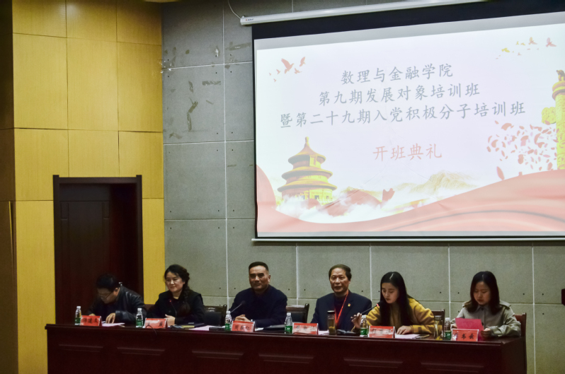 11月10日,数理与金融学院分党校第九期发展对象培训班暨第二十九期入党积极分子培训班开班典礼在C座5楼报告厅举行。数理与金融学院分党校发展史上第一任校长、原应用数理系党总支书记、援越抗美战争亲历者苏自林,数理与金融学院分党校校长、党委书记周毅仁,学院党委副书记、纪委书记王燕,学生党支部书记和培训班班主任及培训班全体成员参加典礼。
