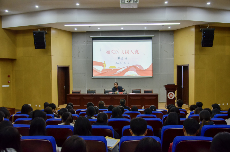 周毅仁代表学院党委聘请苏自林为数理与金融学院分党校教师。苏自林佩戴着“光荣在党50年”纪念章,为全体学员带来培训班第一堂党课《“我是共产党员”——难忘的火线入党》。苏自林从自己火线入党的难忘经历讲起,讲述了“我是共产党员”六个字所代表的“伟大与光荣”“自信与自豪”“奉献与牺牲”,深深震撼了全体学员。作为学院分党校第一任校长,他对培训班全体学员提出严格要求,强调要认真学习党章,了解党的性质和宗旨,明白党员的义务和权利,深入学习党的百年奋斗史和光荣传统;要端正入党动机,不能随大流;要在行动上作表率,在言行举止上作模范,不计较个人得失,困难面前先行,利益面前后行;更勉励同学们要德智体美劳全面发展,学会做人、做事、做学问,成为社会有用的、欢迎的、器重的人才。