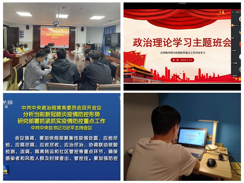 2022年5月9日-12日,数理与金融学院研究生各班级开展政治学习主题会议,专题学习5月5日中共中央政治局常务委员会会议精神。