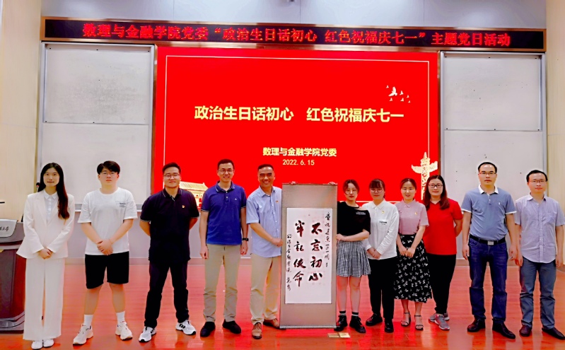 6月16日,数理与金融学院党委在二教报告厅举办“政治生日话初心 红色祝福庆七一”主题党日暨庆祝建党一〇一周年活动,学院党委委员、纪委委员、全体师生党员、分党校培训班学员参加了活动,活动由学院党委副书记何志恒主持。