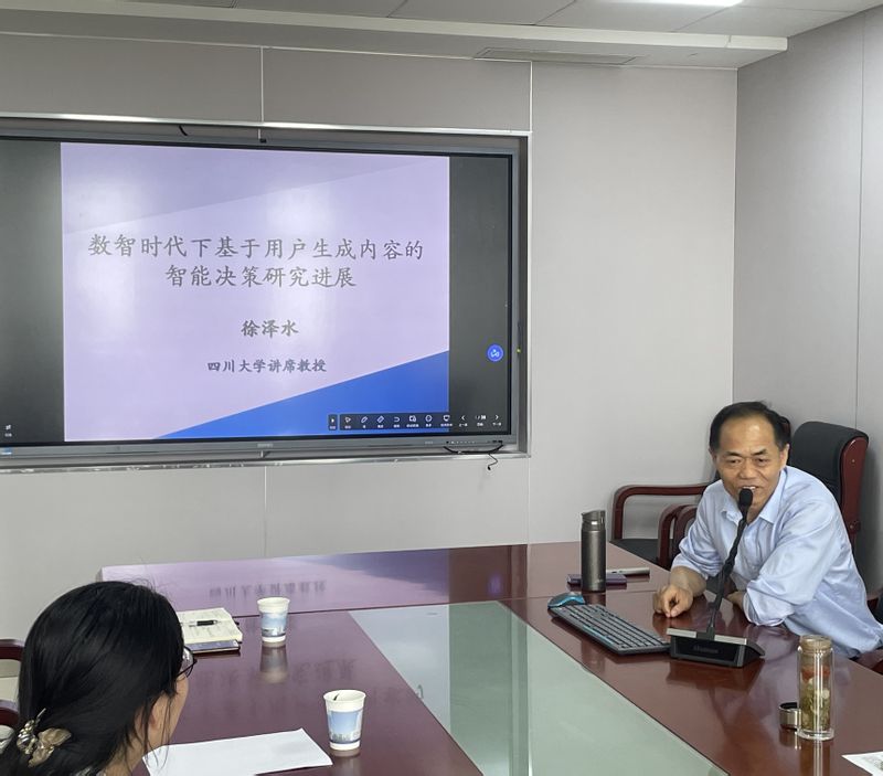 5月26日上午,应科技处、研究生部、数理与金融学院邀请,四川大学徐泽水教授在T1610会议室作题为《数智时代下基于用户生成内容的智能决策研究进展》的学术报告。报告会由系统科学学科负责人费为银教授主持,学院院长吴小太、科技处副处长王凤莲、学院副院长潘海峰、部分青年骨干教师以及研究生参加了此次报告会。