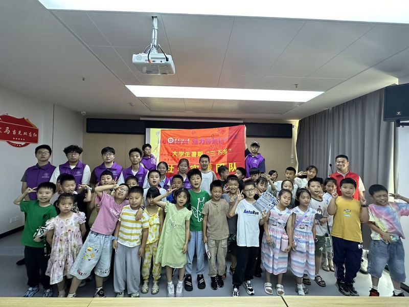 团队成员在合肥市瑶海区当涂路社区居民委员会“夏荫书院”开展以“书声润童心,悦享普通话”为主题的读书分享会。统计243班罗敏娜、区块链242班黄可人和梁梦淳结合近期的热点事件和当地的文化特色,带领小朋友们开展经典阅读和诵读活动,借助童谣、古诗等形式,引导小朋友积极参与,踊跃发言,进一步培养了他们使用普通话表达的能力,助力教育强国建设。