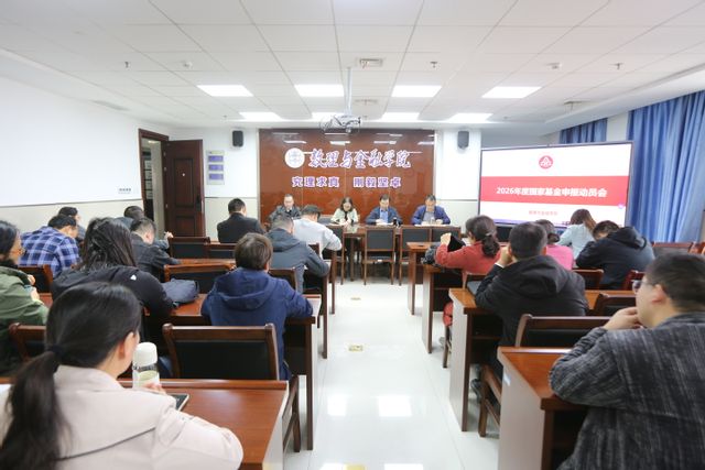 为做好2026年度国家基金申报工作,进一步提高国家基金申报质量,10月29日下午,学院召开2026年度国家基金项目申报动员会,学院党政领导、各系中心负责人以及拟申报2026年国家基金的教师参加会议,会议由副院长潘海峰主持。