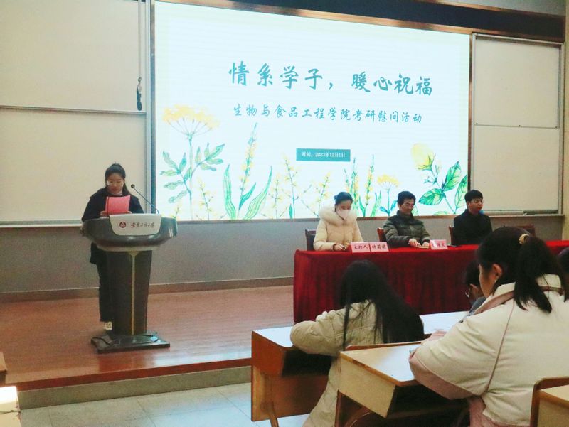 为缓解考研学子压力,坚定考生冲刺信心,12月1日上午,生物与食品工程学院在2教报告厅举办了“情系学子 暖心祝福”考研慰问主题党日活动,学院党委书记余传文、辅导员李良渊及2024届全体考研备考生出席参加本次活动。活动由毕业班辅导员钟莉娟主持。