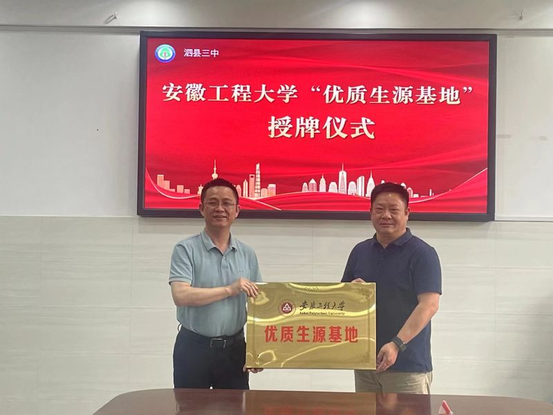 为扎实推进学校招生宣传工作,不断提高本科招生生源质量,6月1日至2日,生物与食品工程学院院长葛飞等一行四人前往宿州三中、泗县三中开展招生宣传,并与两所中学举行优质生源基地授牌仪式。