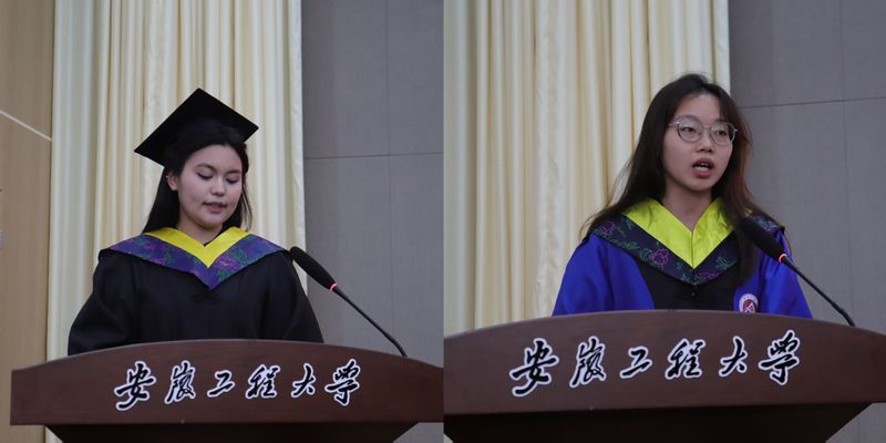 本科生代表林怡男和研究生代表王易梅相继发言,共同抒发了对母校的深情厚谊和对未来的美好憧憬。林怡男感慨大学四年时光飞逝,从懵懂新生到成熟青年,他收获了知识、友谊与成长,衷心感谢母校的培养、老师的教诲以及校训精神的熏陶,并祝愿母校蒸蒸日上,桃李满天下。王易梅则分享了她在学院七年的求学历程,讲述了科研道路上的坚持与收获,强调了团队合作的重要性,并展望未来,表示将肩负起探索生命奥秘、守护人类健康的使命。