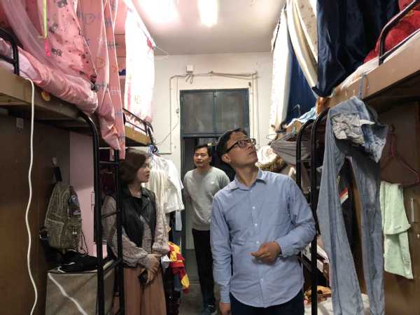 走访检查过程中,学院领导与同学们进行了亲切的交流,听取同学们对宿舍和生活服务设施的意见,询问学习、生活情况,了解学生思想动态,对学生寝室环境卫生、寝室文化建设、寝室学风建设等进行现场指导。