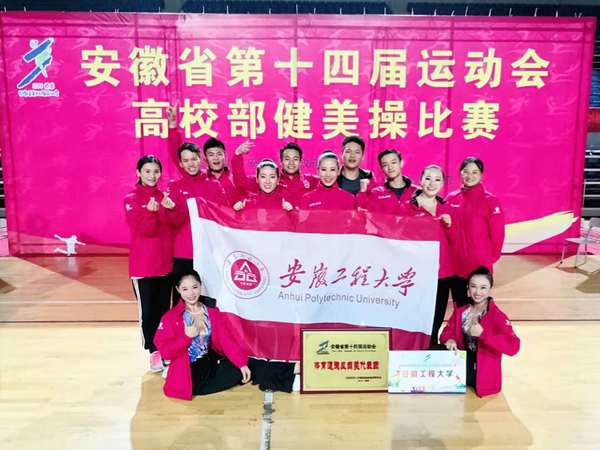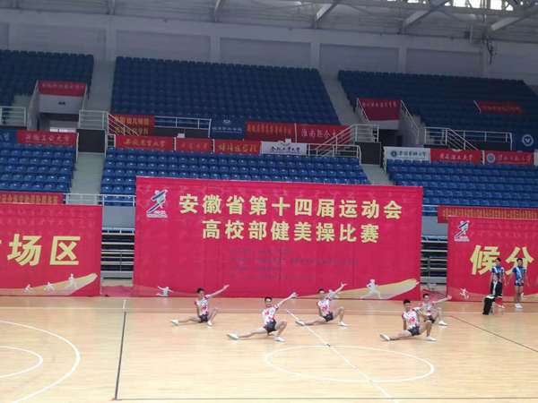 作为安徽省第十四届运动会的压轴赛事,高校部健美操比赛于2018年10月20-24日在蚌埠龙湖体育馆举行。该项赛事是安徽省最高级别的比赛,吸引了全省51所高校的近千名学生参赛。我校健美操队在领队胡好,教练员杨菲菲、李品仙带领下,派出10名运动员参加八个项目的比赛。通过五天的激烈角逐,我校运动员以高规格的技术动作、新颖的节目创编、完美的场上发挥,获得了裁判团、参赛学校的教练员和运动员的高度评价,最终获得了六枚金牌,一枚银牌,一枚铜牌的傲人战绩,再次捍卫了我校健美操项目在全省的领先水平,展示了我校大学生的积极进取的精神风貌,为学校争得了荣誉。
