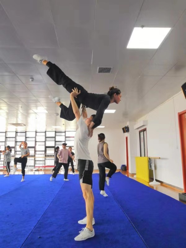 炎炎夏日,在大多数同学享受惬意暑假生活时,健美操队员的身影却穿梭在舞蹈房、食堂和宿舍三点一线中。一天两练没有使他们前进的脚步放缓,高强度的训练也没有使他们想过放弃,因为热爱,才使他们聚集在这里刻苦训练。