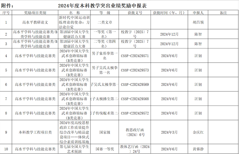 体育学院2024年度本科教学突出业绩申报公示