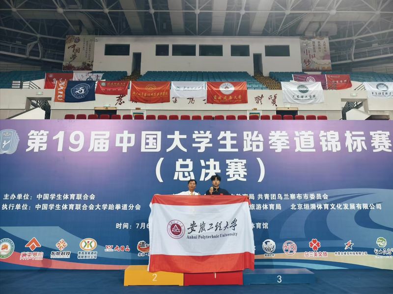7月6日至11日,第19届中国大学生跆拳道锦标赛总决赛在乌兰察布市举行。本次赛事由中国大学生体育联合会主办、中国大学生跆拳道分会执行,吸引了全国150余所高校的优秀运动员参赛。我校计算机与信息学院2023级蔡明同学在男子甲组-74kg个人竞技项目中勇夺金牌,也是安徽省高校在本次总决赛中唯一荣获的一块竞技类金牌,并荣获“优秀运动员”称号。