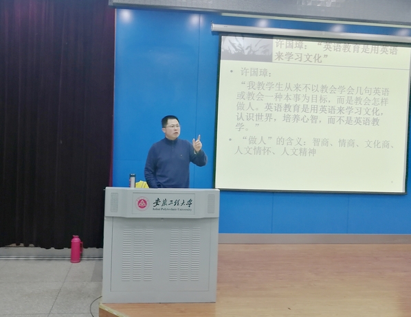 3月13日晚7时,上海外国语大学语言研究院专职研究员、博士生导师沈骑教授于5教117为我校师生做了题为“外语专业学习规划漫谈”的学术报告。报告会由外国语学院副院长黄焰结教授主持,外国语学院部分师生和其他相关专业本科生聆听了本次报告。