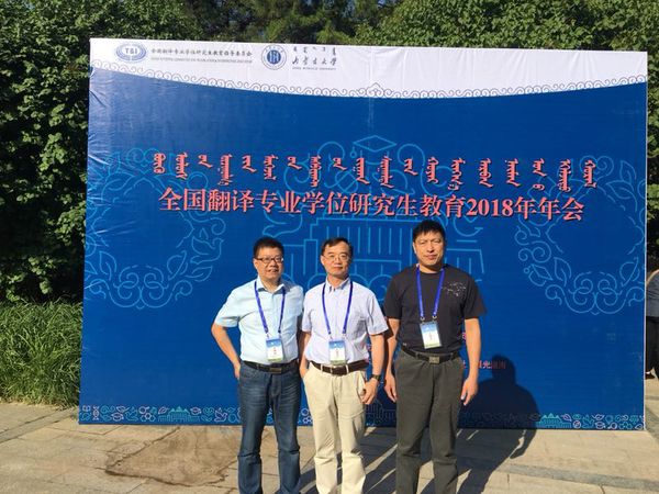 由全国翻译专业学位研究生教育指导委员会以及中国学位与研究生教育学会翻译专业学位工作委员会主办,内蒙古大学外国语学院承办的全国翻译专业学位研究生教育第十一届年会于2018年6月9日在内蒙古大学隆重召开。来自全国各地200余所高校、近500名与会代表围绕“‘双一流’背景下的翻译硕士教育”这一主题充分地进行了交流和学习。我校外国语学院副院长黄焰结教授和科研秘书杨会勇老师参加了此次盛会。
