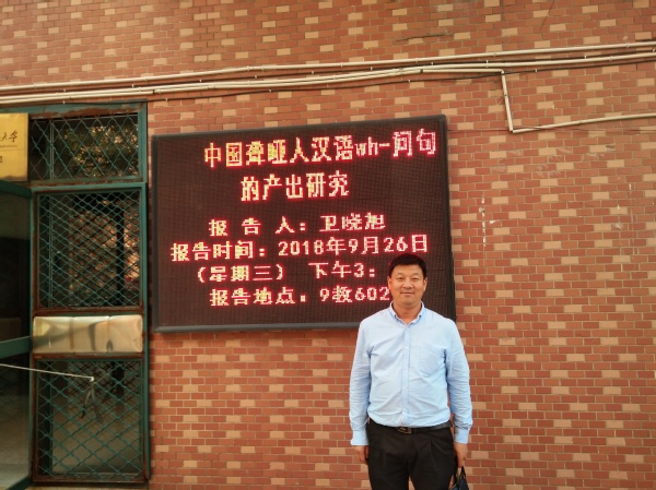 9月26日下午,湖南大学卫晓旭博士应邀为外国语学院师生做了一场题为“中国聋生汉语Wh-疑问句产出研究”的讲座。此次讲座由外国语学院副院长黄焰结教授主持,全体教师及研究生参加。